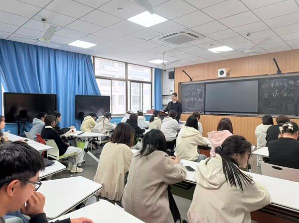 座谈会由国际经济与贸易专业主任胡越明老师主持,副主任王雨晨老师以及来自国贸专业大一、大二年级的三十余名学生代表共同参加了此次会议。