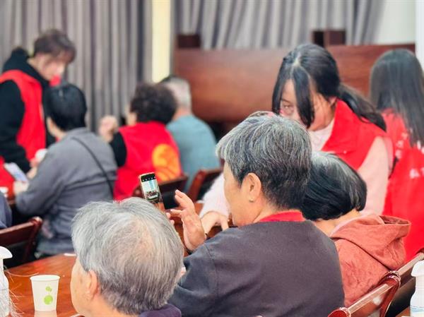 考虑到老年人接受新知识的节奏较慢,活动特别安排了大学生志愿者提供 “一对一” 现场指导。志愿者们耐心细致地解答老人们的疑问,帮助他们实际操作手机拍摄参数调整、演示养生操动作细节,针对个别老人的特殊需求进行个性化辅导。“以前用手机拍照总是模糊不清,今天听了老师的讲解,志愿者还一步步教我调参数,现在终于能拍出清晰的照片了!” 社区居民王阿姨开心地说道。