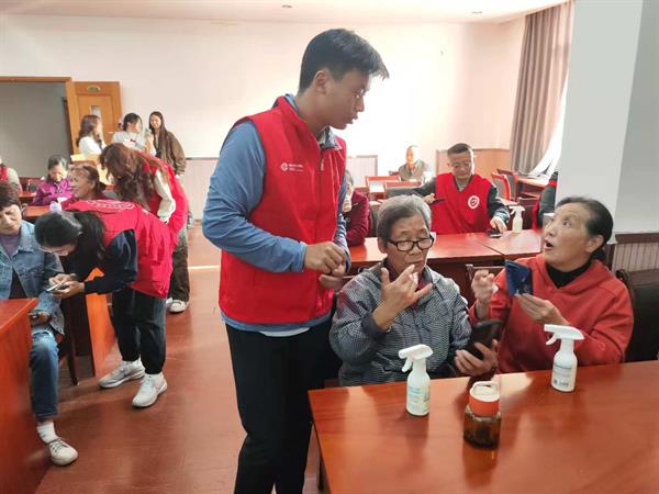 近日,数字商务学院电子商务专业郑磊、邵广利两位教师带领多名大学生志愿者,走进新典社区开展老年人生活技能公益培训活动。活动现场气氛热烈,吸引了三百余名社区老年居民参与,通过 “理论讲解 + 实操指导” 的形式,为老人们送去了实用的生活技能 “大礼包”,赢得了社区居民的一致好评。