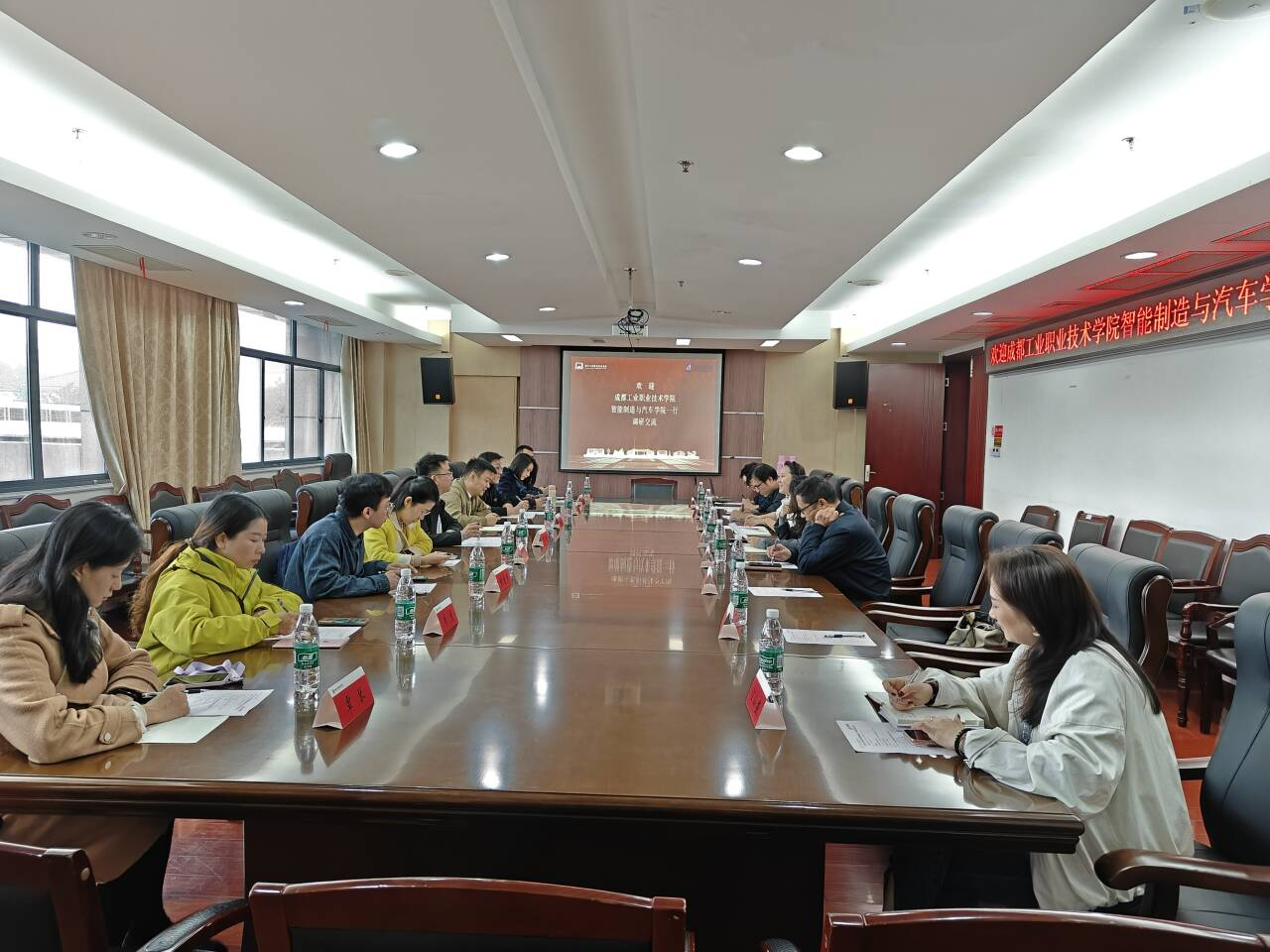 2025年11月7日,由成都工业职业技术学院智能制造与汽车学院副院长熊庆带队,一行9人赴我校人工智能学院调研交流,重点围绕“双高”建设、专业群建设、课程思政与课堂教学创新、学生管理等内容进行热烈讨论。