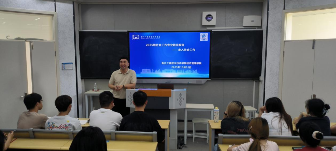 为帮助社会工作专业新生快速了解专业内涵、明确学习方向、坚定职业信念,近日,浙江工商职业技术学院经济管理学院为 2025 级社会工作专业新生开设始业教育专项课程。课程围绕 “专业认知、榜样引领、成长规划” 三大核心,通过互动问答、案例分享、视频学习等形式,为新生们送上了一堂兼具温度与深度的 “专业启蒙课”。