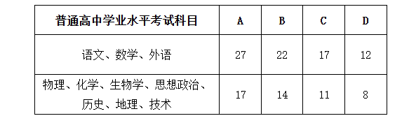 1.普通高中考生依据成绩由其高中学考成绩等级计算得到,高中学考选十门科目计算,计算后折换成满分200分,具体计算分值如下: