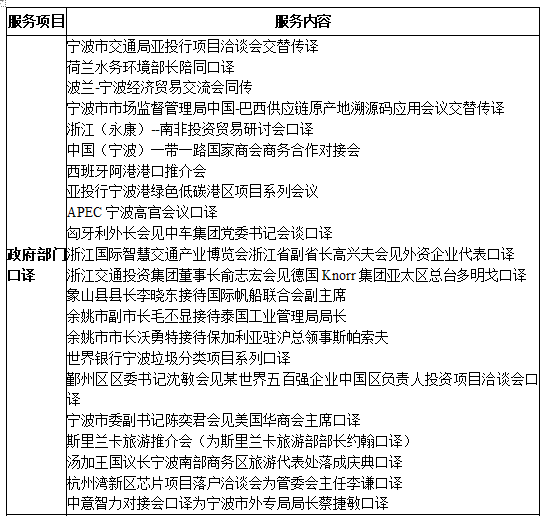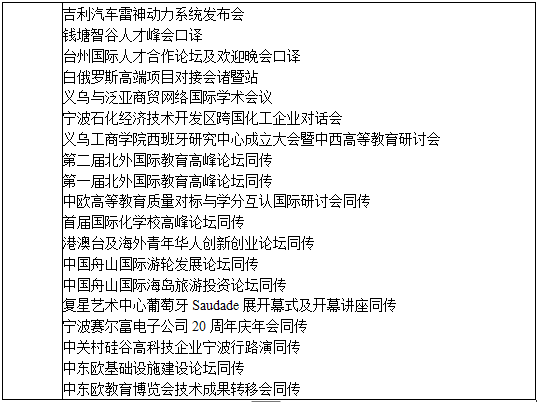 专业对外服务能力强,具有校级优秀翻译社会服务团队,专业教师在省内同行、区域产业中知名度高、权威性强,为区域外语外贸产业贡献鲜明。具有全省知名同传口译,交替口译师、浙江省批跨境电商师,亚马逊平台培训师。依托“中小企业外语外贸服务中心”平台,实现各类中高端会议口译425人次,各类大型展会志愿者翻译服务52场、各类书籍与资料翻译 85本、为跨境电商企业咨询培训服务5500人次、为外贸企业出海开展员工培训6326人次,开设跨境电商职业资格证书培训班,为企业推送各类资讯信息200多条。部分社会服务如下: